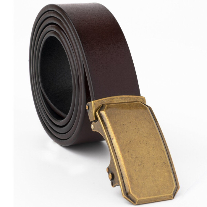 Деловой мужской ремень коричневого цвета из натуральной кожи. Модель изготовлена из цельного полотна. Дизайн продуман до самих мелочей. Аксессуар красиво переливается на солнце придавая вашему образу завершенности и элегантности. Пряжка ремня выполнена из крепкого металла латунного цвета. Ремень незаменимая вещь в гардеробе любого мужчины. Особенно если ремень из качественного материала он будет служить вам значительно дольше. Стоит отметить, что качество ремня ничем не уступает дорогим брендам, но ценник - на порядок ниже. Рекомендуем вам данную модель как для себя, так и для своих близких.