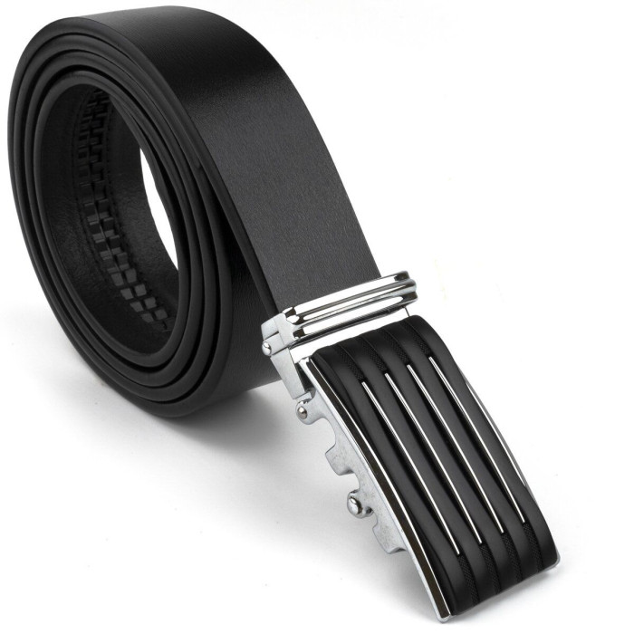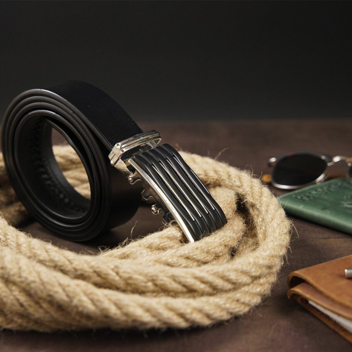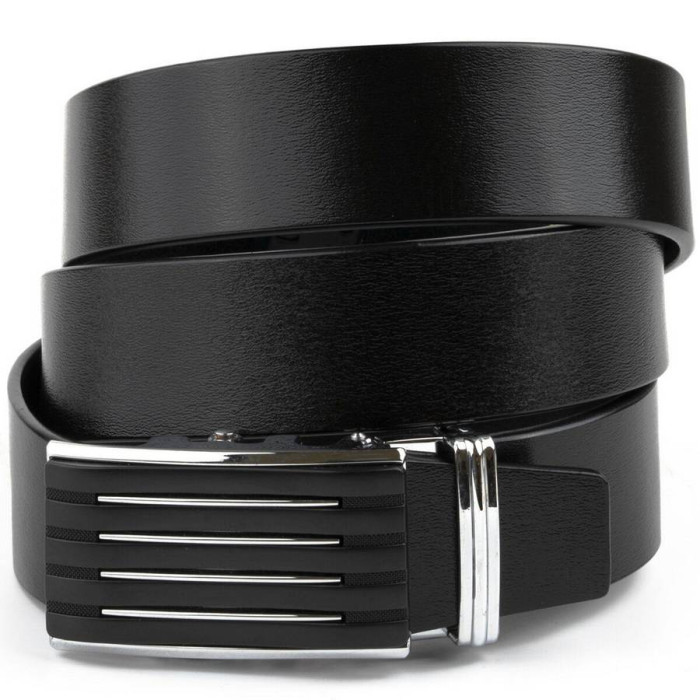 Качественный ремешок из натуральной кожи и цельного полотна. Модель дополнена оригинальной пряжкой, которая сочетает черный цвет и серебристые полоски. Пряжка придает ремешку особенного шарма и добавляет индивидуальности. Ремень подойдет под джинсы и брюки. Пряжка автомат очень удобная и долгое время не выходит из строя. Если вы в поисках качественного ремня - рекомендуем вам данную модель. А также вы можете приобрести ремешок на подарок мужчине. Уверены, что изделие не оставит его равнодушным.