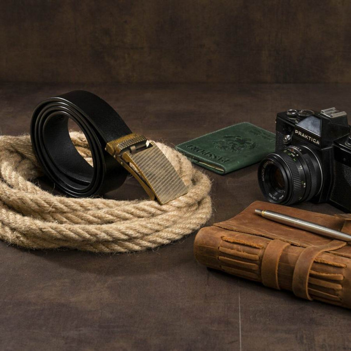 Кожаный мужской ремень высочайшего качества. Изделие с легкостью дополнит любой ваш образ. В сочетании с оригинальной пряжкой цвета латунь и мелкой зернистостью в виде полосок ремень не оставит равнодушным любого мужчину. Автоматическая пряжка ремешка очень практична и проста в использовании. Кожаный ремень уже давно стал неотъемлемой частью базового мужского гардероба. По качеству аксессуар ничем не уступает дорогим именитым брендом. Рекомендуем к покупке данный ремешок. Изделие станет прекрасным подарком для любого мужчины.