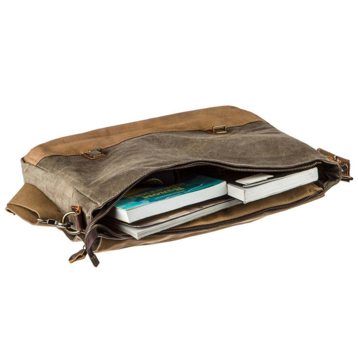 Винтажная сумка в деловом стиле из канвас в сочетании с натуральной кожей. Аксессуар очень плотный и будет долго носиться. В сумке вы легко можете переносить ноутбук с диагональю 15.6 дюймов. Портфель выполнен в сером цвете с коричневатым оттенком и с натуральной винтажной кожей коричневого цвета. Такой портфель станет вашим идеальным помощником для работы или учебы. Дополнен аксессуар крепкой фурнитурой цвета латуни. Сумку вы можете носить как в руках за кожаную ручку, так и на плече. Изделие станет идеальным подарком для любого мужчины.