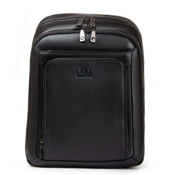 Большой мужской кожаный рюкзак Bretton. Изготовлен из натуральной мягкой кожи. Три отделения, закрываются на молнии. Внутри отделений находятся большой карман на молнии и карман для нетбука или планшета. На фасаде рюкзака расположены два вместительных кармана на молнии. Широкие и мягкие плечевые лямки регулируются по длине.