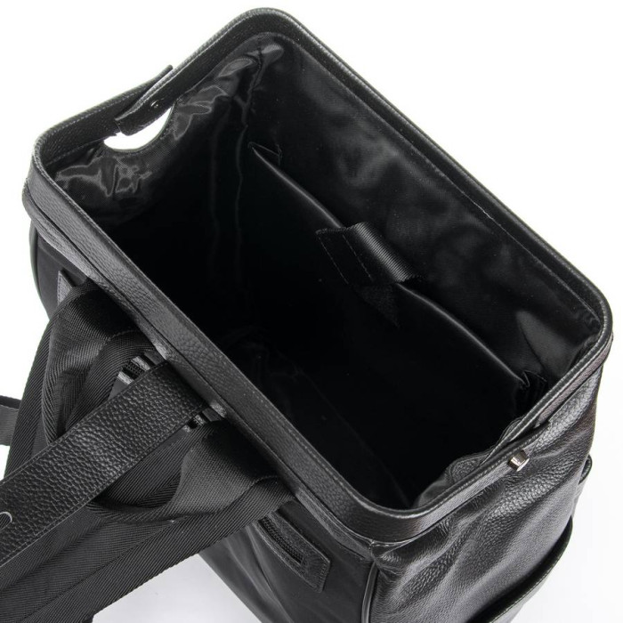 Большой мужской кожаный рюкзак Bretton. Одно отделение закрываются на ремень-застежку. Внутри отделения находится карман для нетбука или планшета и боковой карман на молнии. На фасаде и обратной стороне рюкзака расположены карманы на молнии. На торцах рюкзака есть небольшие открытые карманы. Широкие и мягкие плечевые лямки регулируются по длине. Размер (см.) 29*36*20
