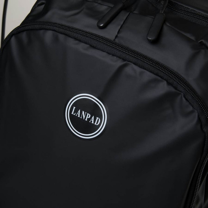 Рюкзак городской Lanpad. Изготовлен из материала с водоотталкивающим покрытием. Рельефная уплотненная спинка. Два отделения, закрываются на молнию. Внутри есть боковой открытый двойной карман и карман для ноутбука. На фасаде находится один карман на молнии, а на боковых стенках есть два кармана-сетки. Плечевые лямки регулируется по длине.