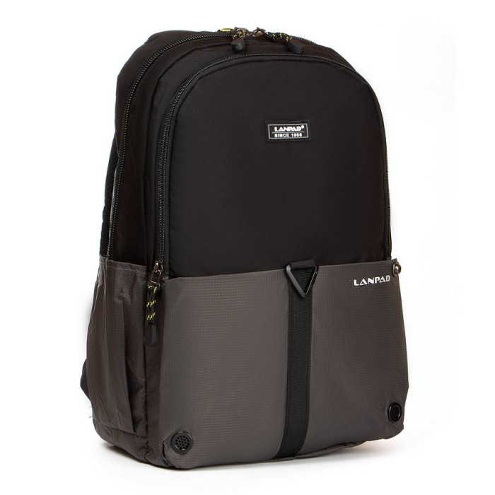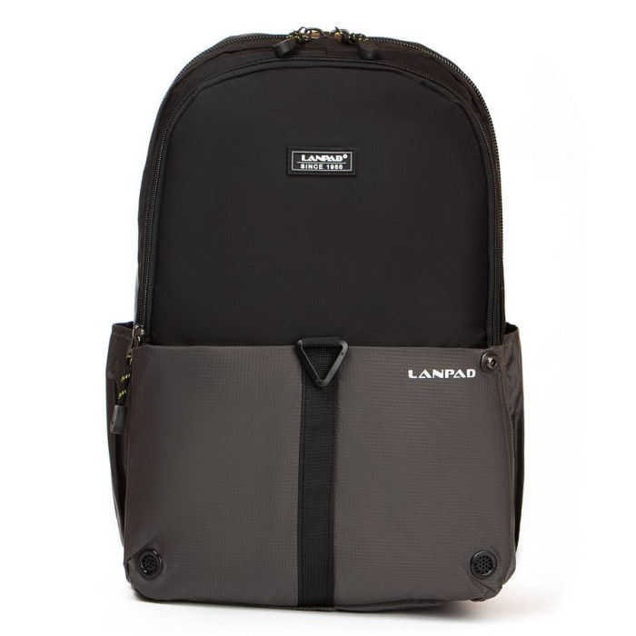 Рюкзак городской Lanpad. Два отделения, закрываются на молнии. Внутри основного есть боковой открытый карман для ноутбука и двойной открытый карман и карман на молнии. На фасаде находятся два карман на застежке-липучке, а на обратной стороне карман на молнии. На торцах рюкзака есть два открытых кармана.