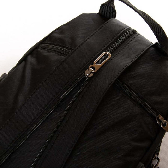 Мужская большая сумка-рюкзак Lanpad. Одно основное отделение, закрывается на молнию. Внутри отделения есть карман на молнии и открытый карман. На фасаде и обратной стороне находятся вместительные карманы на молнии. На боковых сторонах сумки есть открытые небольшие карманы.