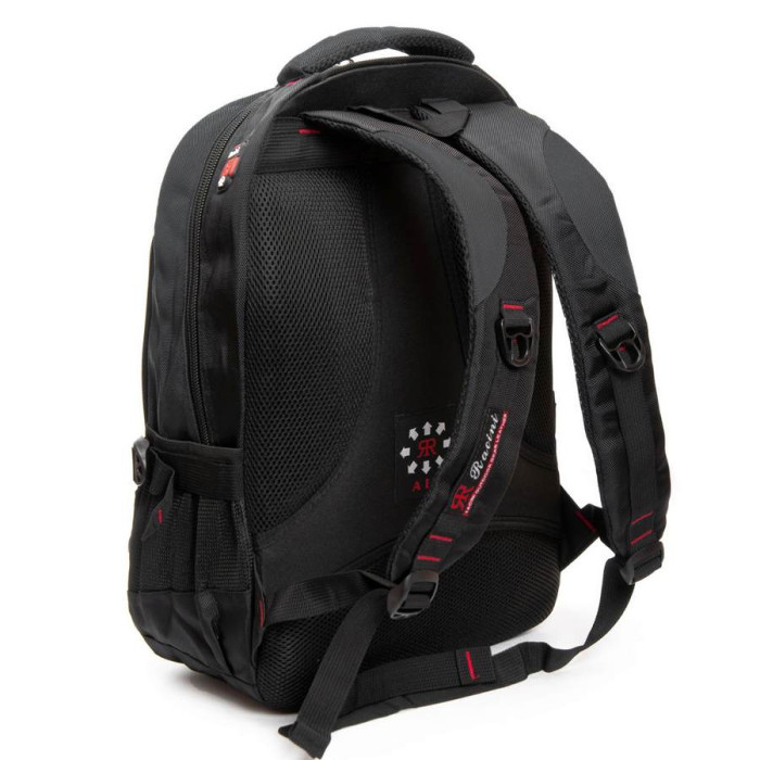 Городской рюкзак "Racini". Плотная спинка с мягкими вставками. Внутри рюкзака два отделения на молнии. В первом отделении расположен карман- органайзер, во-втором отделении есть карман для ноутбука и карман для смартфона. На фасаде находится вместительный карман на молнии. Снаружи на боковых сторонах рюкзака расположены карманы-сетки для бутылок воды объемом 0,5 литров.