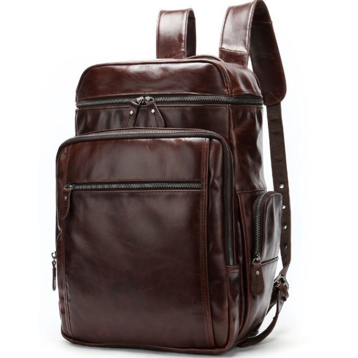 Вместительный дорожный рюзак унисекс из натуральной гладкой кожи. С таким рюкзаком вам будет намного удобнее в поездке, чем с сумкой, так как ваши руки будут свободны. Рюкзак имеет уплотненное дно и регулируемые лямки на плечи. Модель создана с учетом всех модных тенденций и пожеланий. Разнообразие карманов отдельный карман для вашего ноутбука или планшета. В этом рюкзаке все создано для вашего комфорта и удобства. Кожаный рюкзак прослужит вам далеко не один год. Аксессуар упакован в пылезащитный чехол белого цвета. Будет хорошим подарком по любому поводу.