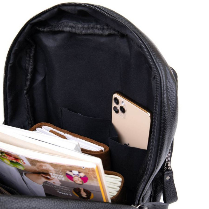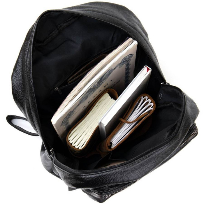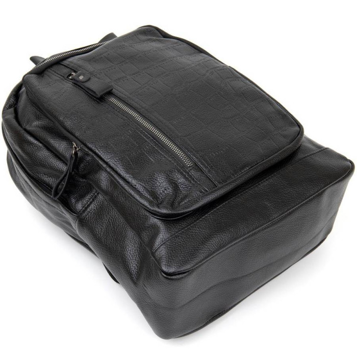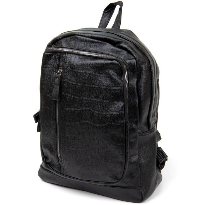 Вместительный рюкзак из кожзама довольно плотного и при этом не грубого. Аксессуар дополнен серебристой фурнитурой. На лицевой стороне изделия тиснение под экзотическую кожу. Внутри рюкзак дополнен качественной текстильной подкладкой черного цвета. В аксессуаре вы сможете носить планшет, ежедневник, личные вещи, термос. Рюкзак подойдет для путешествий за город или на каждый день, если вы носите достаточно вещей. Также рюкзак из кожзама идеален для студентов и школьников. Мы уверены, что вы останетесь довольны качеством рюкзака на все 100%.