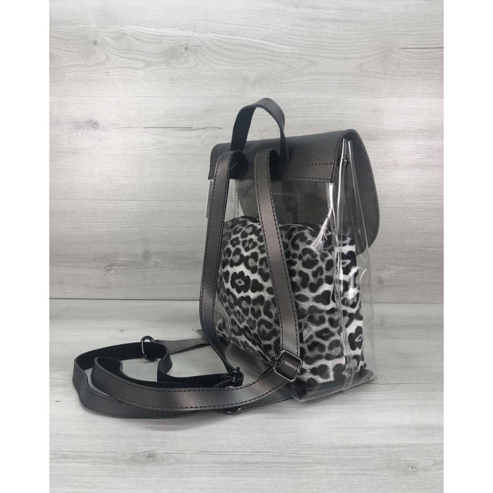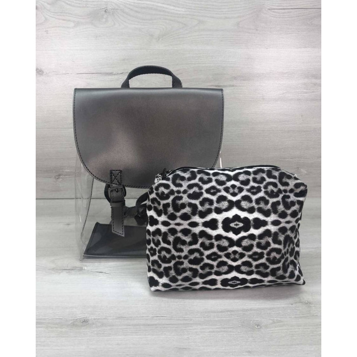 Стильный женский силиконовый рюкзак с косметичкой черный блеск, изготовлен - из искусственной кожи в..