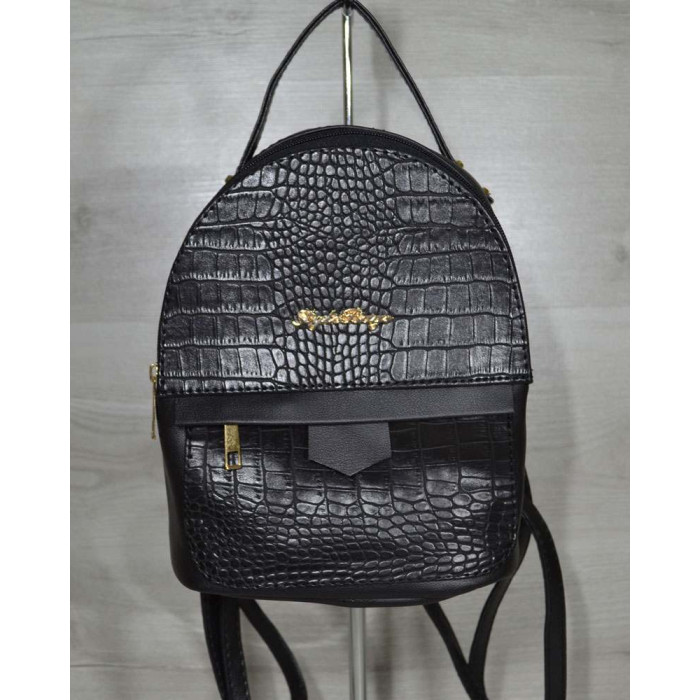 Рюкзак среднего размера черный с вставкой черный крокодил WeLassie