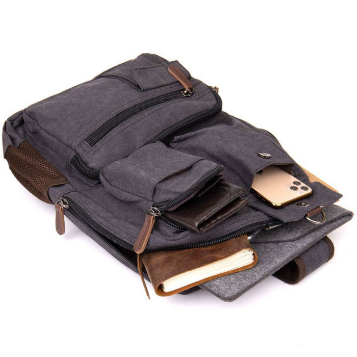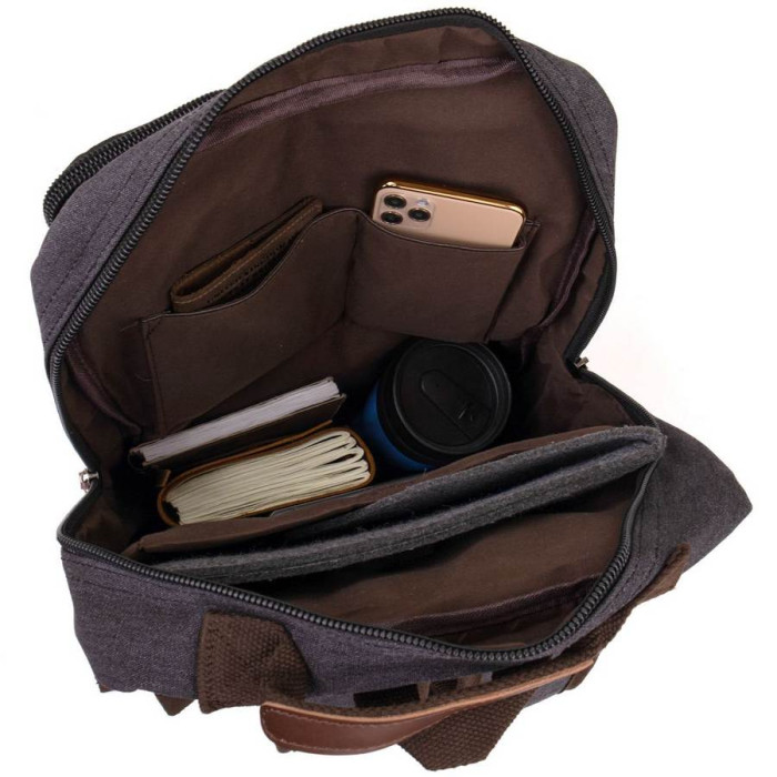 Очень вместительный текстильный рюкзак в графитовом цвете. Изделие в плотном текстиле с качественной фурнитурой. Модель имеет очень разнообразные кармашки для вашего удобства. Такой рюкзак - мечта любого путешествия. Хороший рюкзак на все сезоны. Внутри - качественная текстильная подкладка. Рюкзак подойдет под стандартный ноутбук. С рюкзаком ваши руки будут свободны. Изделие станет прекрасным подарком для ваших близких.