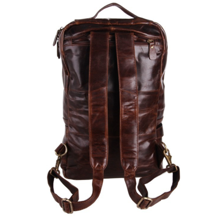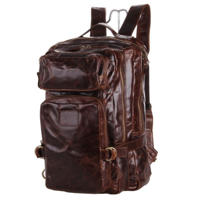 - по бокам рюкзак дополнен кожаными лямками, которыми регулируется наполняемость рюкзака.