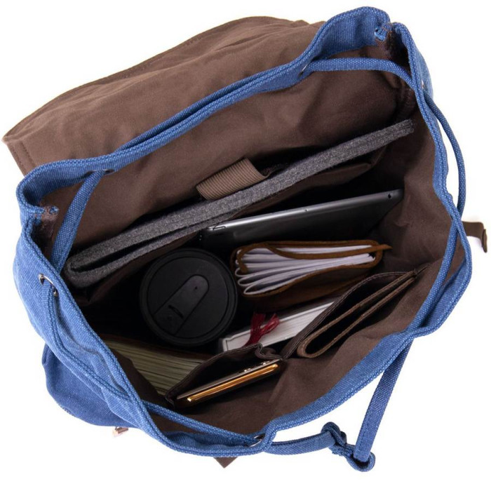 Стильный туристический рюкзак в синем практичном цвете. Модель очень вместительная и подойдет под ноутбук (внутри есть соответствующий карман). Рюкзак дополнен плотной текстильной подкладкой коричневого цвета. Рюкзак также имеет утягивающие шнурки. Закрывается на клапан. Дополнен рюкзак удобной спинкой которая держит вашу спину. Рюкзак очень легкий. Подойдет изделие для походов, в дорогу и для занятий спортом. Удобный рюкзак станет находкой для современного клиента. Рекомендуем вам к покупке данную модель. Доступен рюкзак на нашем сайте в разных цветах.
