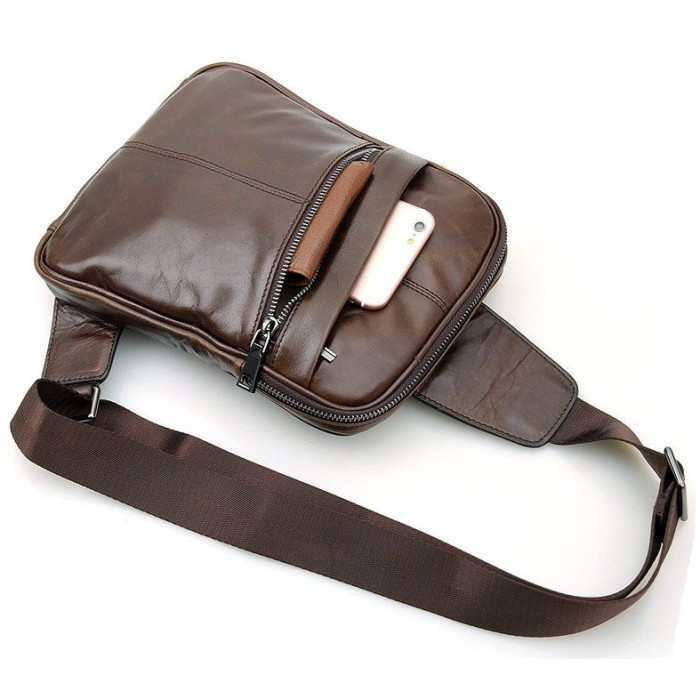 Современный кожаный рюкзак небольших размеров. Несмотря на компактные размеры, аксессуар имеет множество карманов и отделений. Цвет фурнитуры: темное серебро. На лицевой стороне изделия расположены сразу два небольших кармана на молнии. Аксессуар аккуратно прошит сверхпрочной нитью коричневого цвета. Рюкзак упакован текстильный пылезащитный чехол.