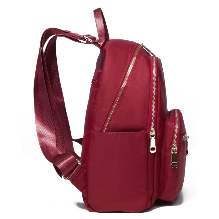 Современный женский рюкзак компактного размера на каждый день. Аксессуар имеет оригинальный классический дизайн, который не привязывает вас к определенному стилю. Модель дополнена блестящей золотистой фурнитурой и очень приятная на ощупь. В аксессуар легко поместится косметичка, деньги, ежедневник или любимая книга, а также другие необходимые женские мелочи. Очень хорошая модель на каждый день. Рюкзак выполнен из плотного нейлона и прослужит вам сравнительно долго. Несмотря на свой небольшой размер аксессуар очень вместительный и удобный. Рюкзак будет идеальным подарком для любой девушки.