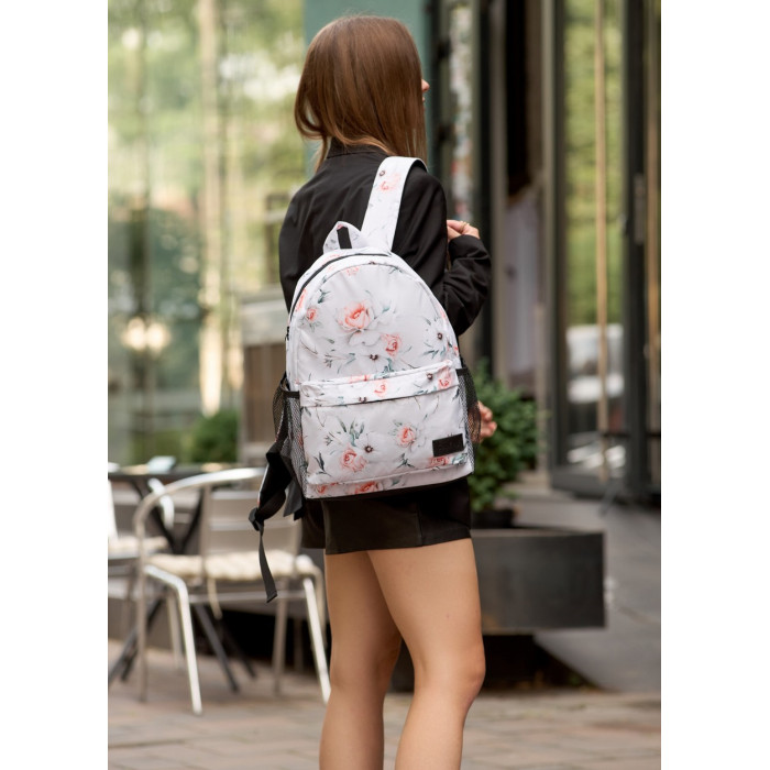 Жіночий рюкзак Sambag Brix белый с цветочным белым принтом