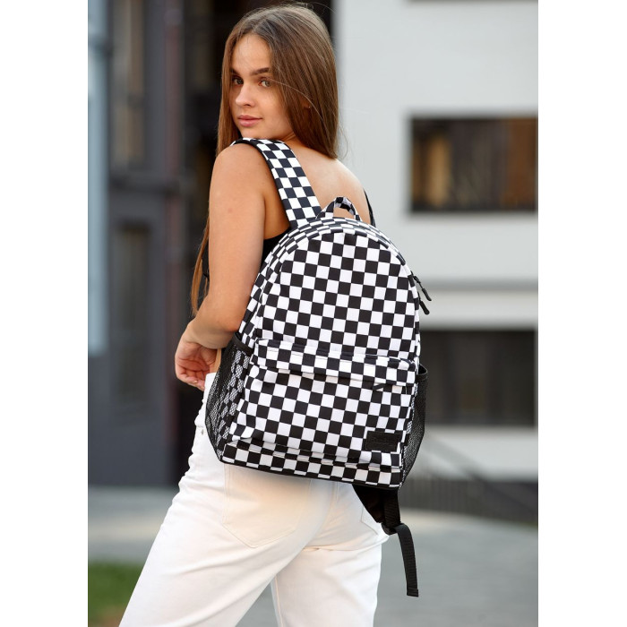 Функциональность: Снаружи рюкзака спереди один карман на молнии. Внутри рюказака отдельное отделение. С другой стороны середины карман на молнии и четыре открытых кармана.