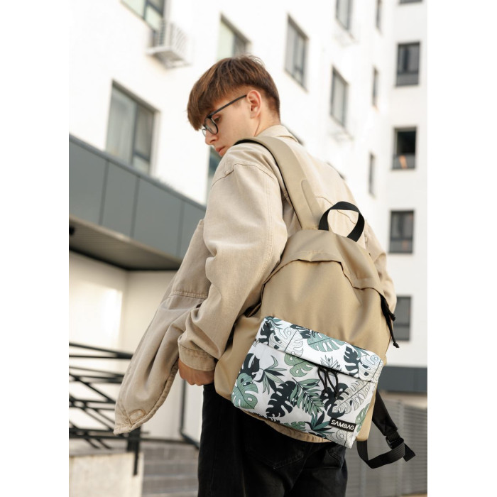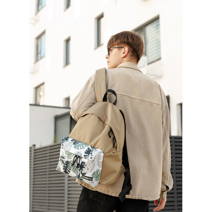 Чоловічий рюкзак Active пісочний тканевий з принтом "monstera" за вигідними цінами.