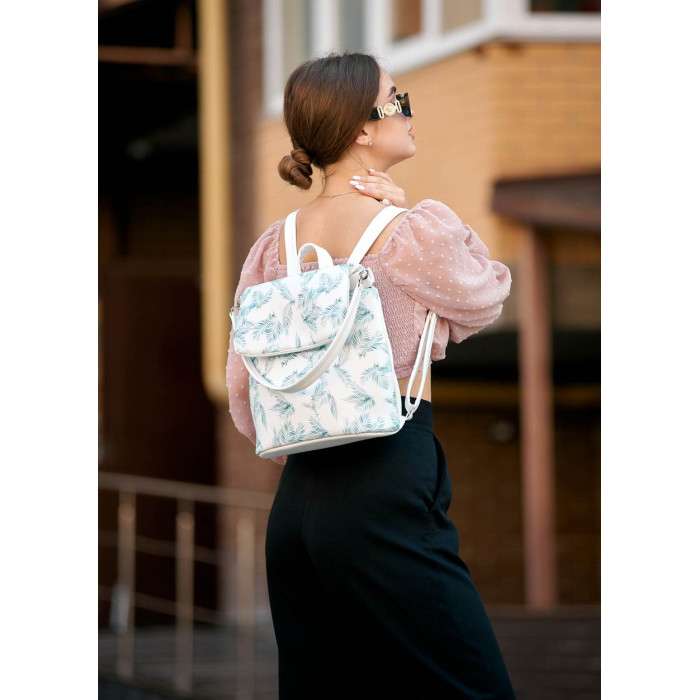 Женский рюкзак-сумка Sambag Loft белый с принтом "Palm"