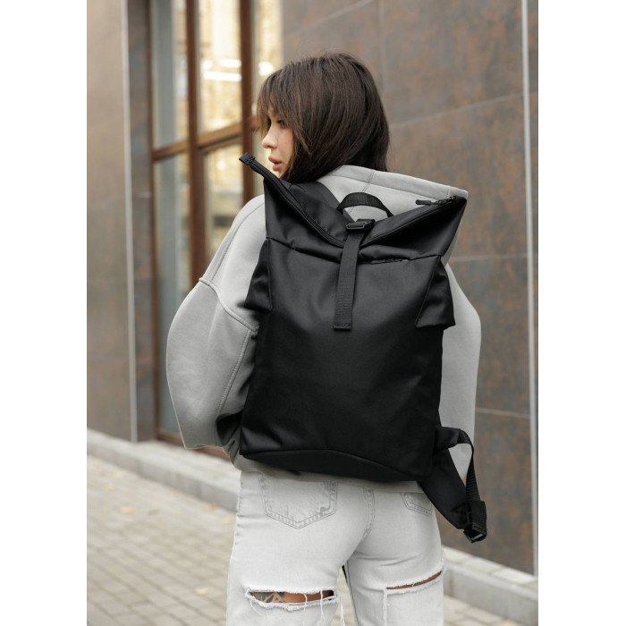 Женский рюкзак ролл Sambag RollTop KZN черный тканевый