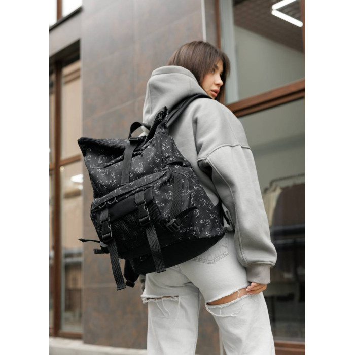 Женский рюкзак ролл Sambag RollTop Double черный принт