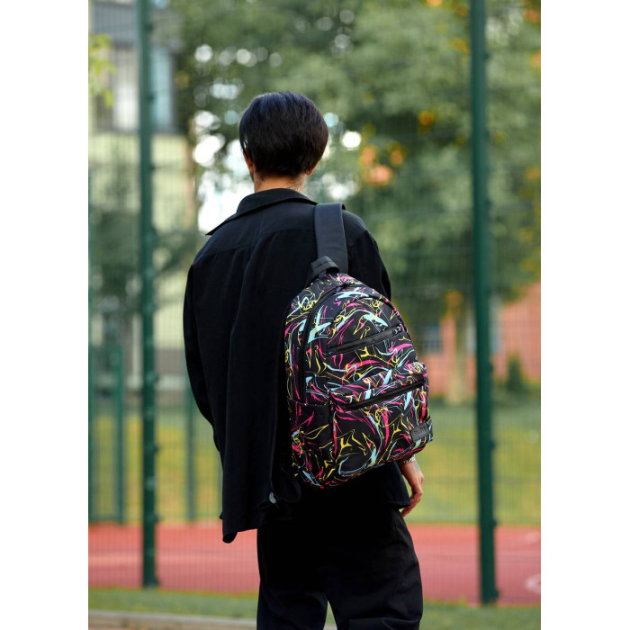 Функциональность. Снаружи спереди рюкзака два кармана: один большой карман и меньший над ним, оба на молнии. Внутри отдельное отделение под ноутбук до 14 дюймов (зависит от пропорций экрана и рамок вокруг него – при заказе уточняйте размер своего гаджета).С другой стороны середины карман на молнии и один открытый карман. Снаружи на спинке рюкзака есть два дополнительных кармана на молнии, один из которых под формат А4. По бокам два открытых кармана для разных мелочей.
