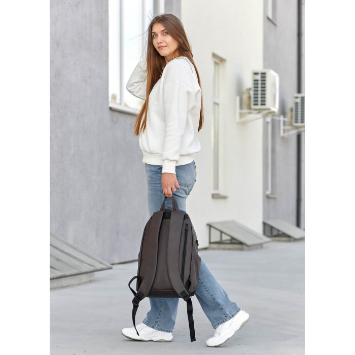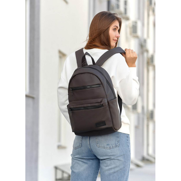 Функциональность. Снаружи спереди рюкзака два кармана: один большой карман и меньший над ним, оба на молнии. Внутри отдельное отделение под ноутбук до 14 дюймов (зависит от пропорций экрана и рамок вокруг него – при заказе уточняйте размер своего гаджета).С другой стороны середины карман на молнии и один открытый карман. Снаружи на спинке рюкзака есть два дополнительных кармана на молнии, один из которых под формат А4. По бокам два открытых кармана для разных мелочей.