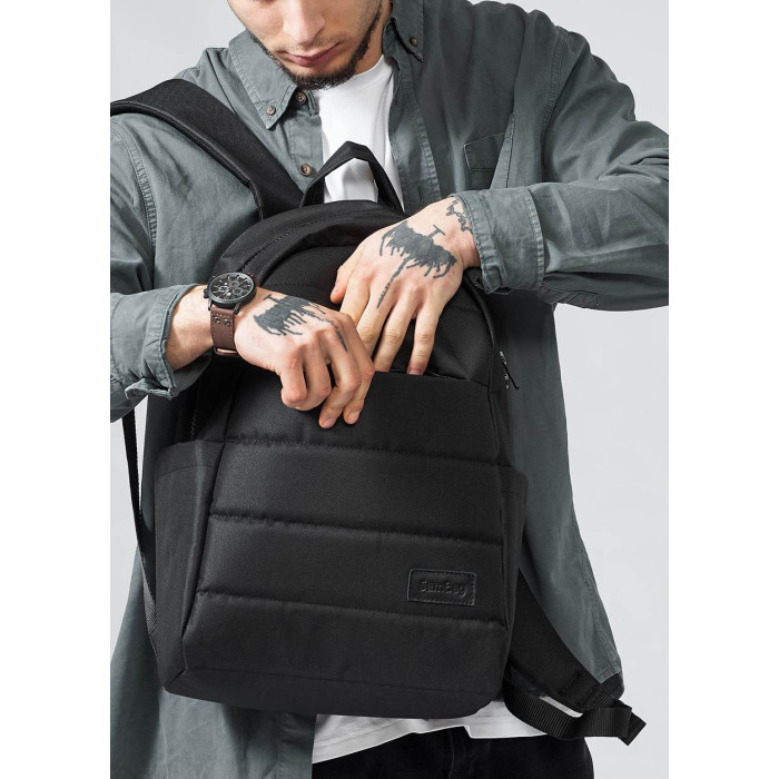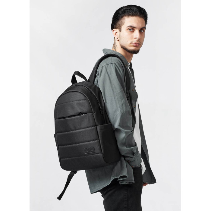 Функциональность. Снаружи рюкзака спереди один скрытый карман и по бокам два открытых кармана. По спинке один карман молнии.Внутри рюказака отдельное отделение под ноутбук до 14 дюймов (зависит от пропорций экрана и рамок вокруг него – при заказе уточняйте размер своего гаджета). Отделение надежно защищено пеноматериалом по всей высоте гаджета. С другой стороны середины карман на молнии и один открытый карман.