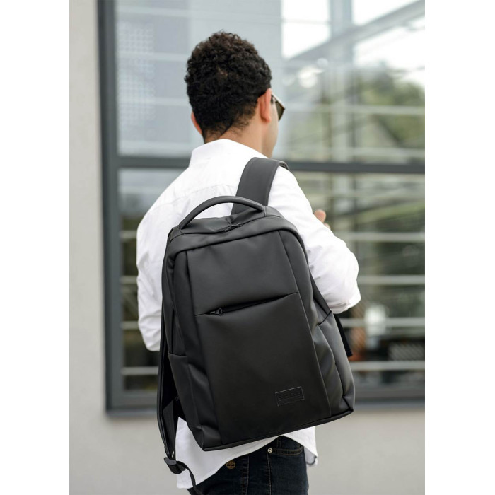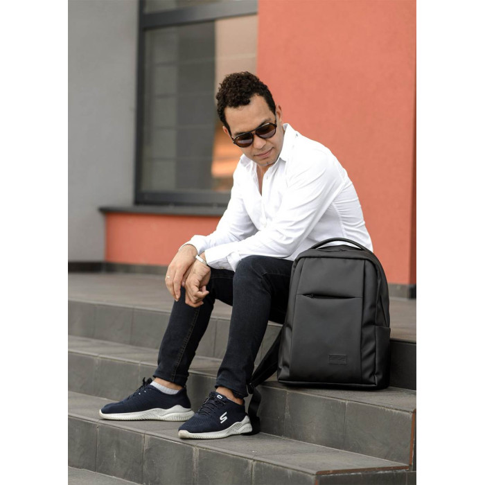 • Функциональность. Снаружи рюкзака спереди один скрытый карман на молнии и два кармана по бокам. Внутри основного отделения рюкзака есть отдельное отделение под ноутбук до 14 дюймов (зависит от пропорций экрана и рамок вокруг него – при заказе уточняйте размер своего гаджета). С другой стороны середины карман на молнии и одна открытая карман. Снаружи на спинке рюкзака есть один дополнительный карман на молнии.