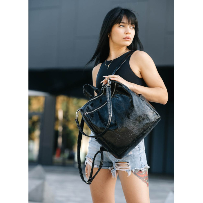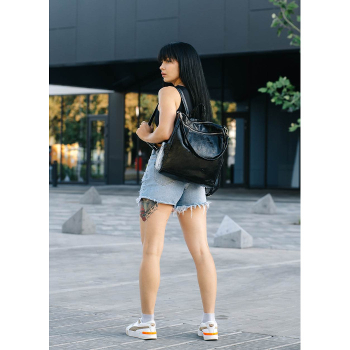 Женский рюкзак-сумка Sambag Trinity черный рельефный