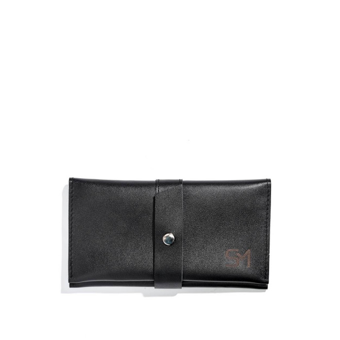 Кожаный кошелек Sambag MSH черный с перфорацией