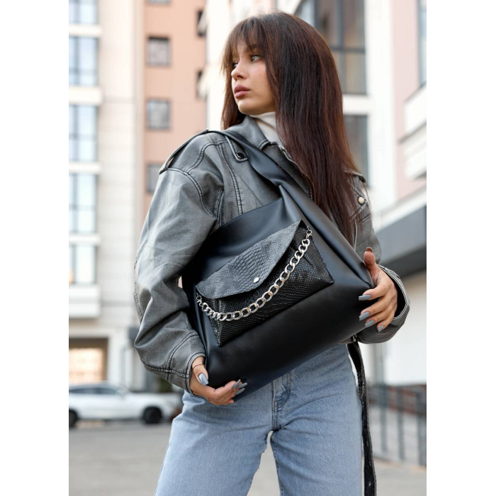 Женская сумка Sambag HOBO Bliss черная крокодил