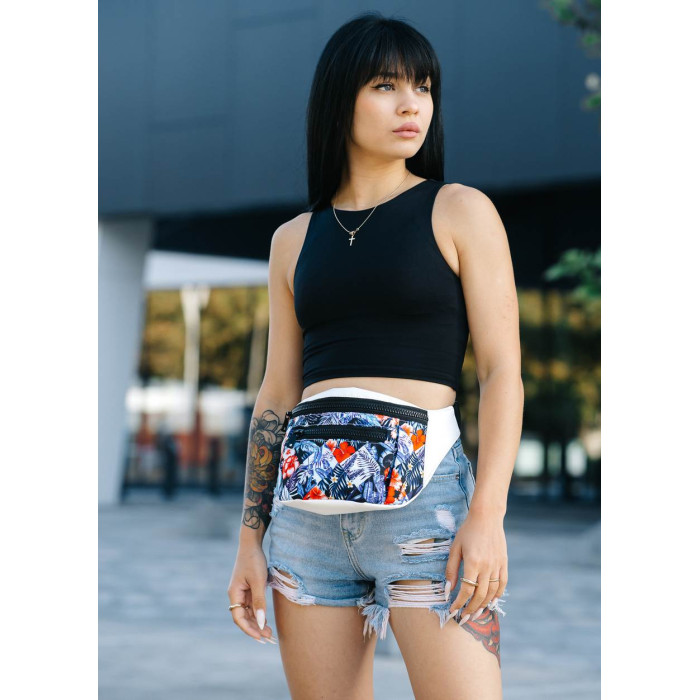 Женская поясная сумка бананка Sambag Tirso Max белая с принтом