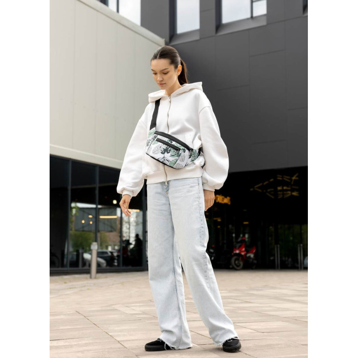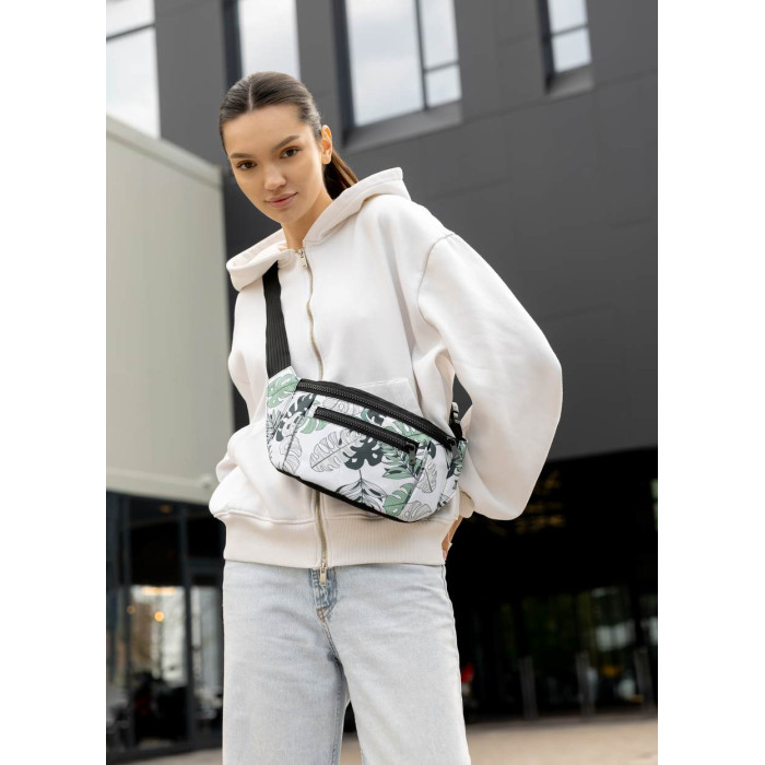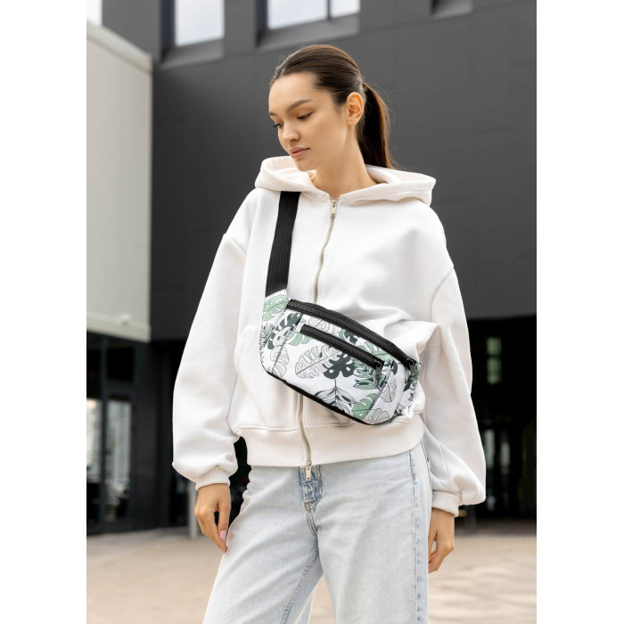 Большая женская сумка на пояс бананка Sambag Tirso Max принт "Leaves"