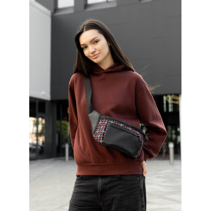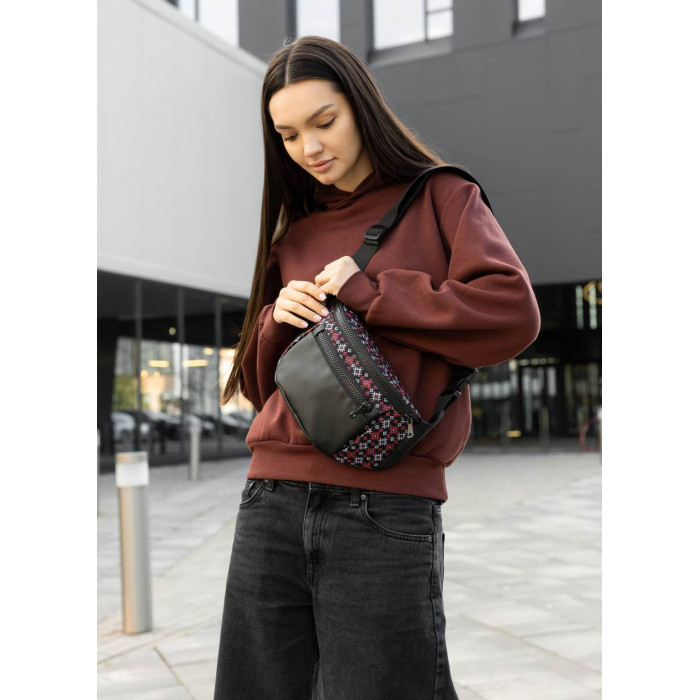 Большая женская сумка на пояс бананка Sambag Tirso Max черная принт