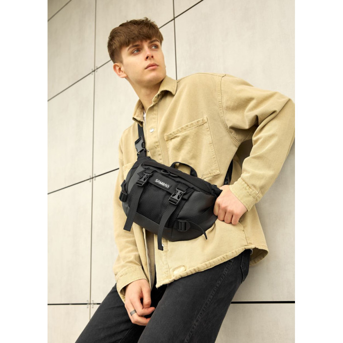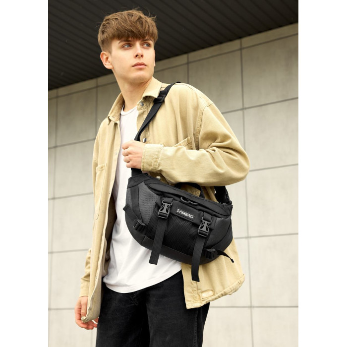 Велика чоловіча поясна сумка бананка для планшета DynamicDart чорна тканева за найкращими цінами.