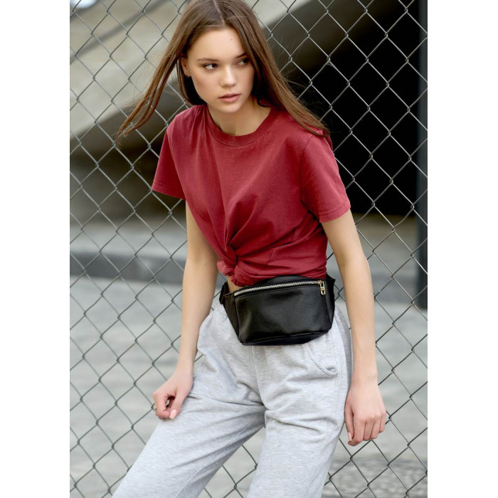 Женская поясная сумка бананка кожаная Sambag Tirso PSS черная
