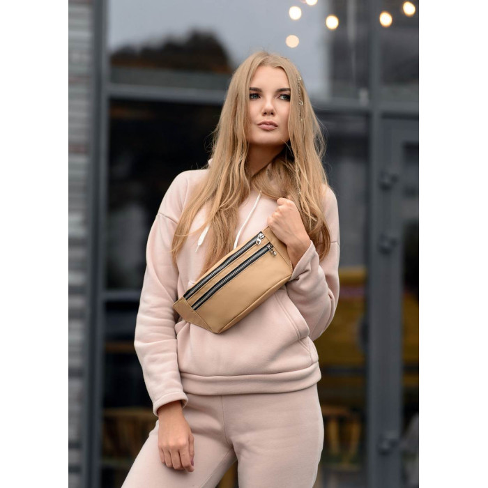 Поясная сумка бананка кожаная Sambag Tirso BTS натуральная бежевая кожа