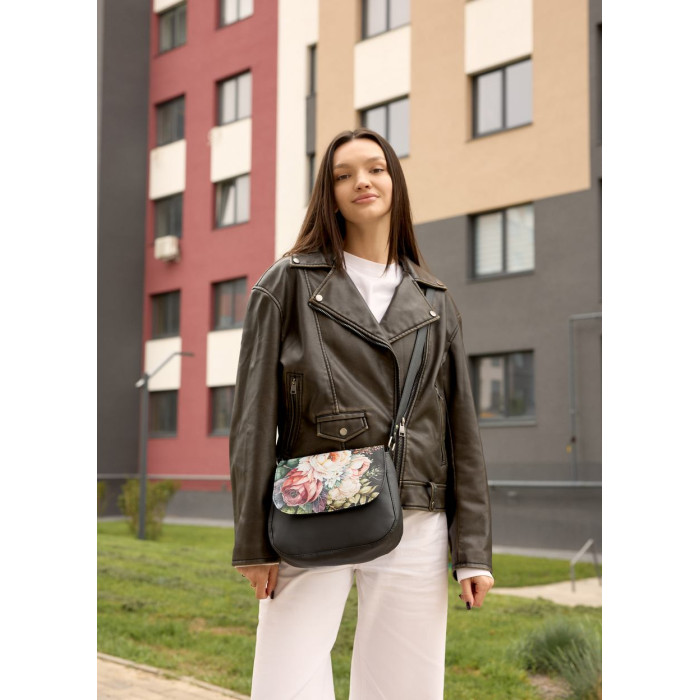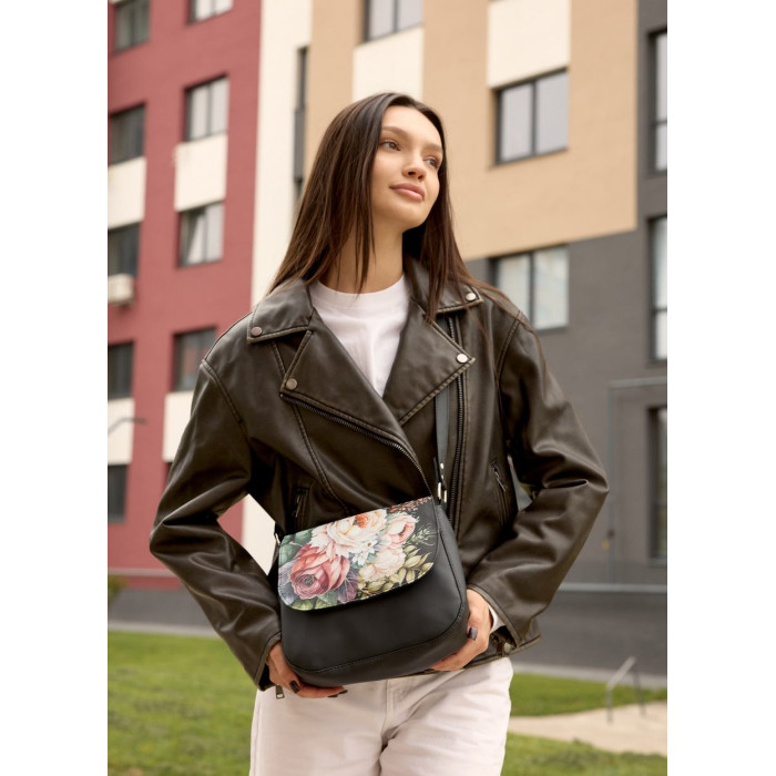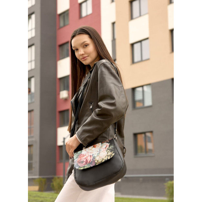 Жіноча сумка Кросбоді Rose чорна з квітковим принтом за вигідними цінами.