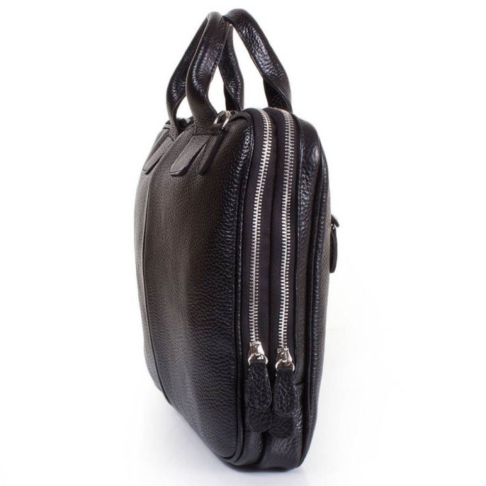 Количество основных отделений: 2. Внутри расположен один прорезной карман на молнии и два накладых кармана, один из них с хлястиком на липучке. На тыльной стороне портфеля есть большой прорезной карман на молнии. Портфель имеет две ручки для переноса в руке. В комплект прилагается съемный плечевой тканевый ремень, длина которого регулируется при помощи металлической пряжки (максимально - 146 см). Портфель можно носить в руке, на плече или через плечо. Материал подклады: плотная ткань. Материал изделия: кожа флотар. Цвет: черный. Цвет фурнитуры: серебро. Размеры (X*Y*Z): 36*26*7 см. Изделие закрывается при помощи молний, каждое отделение автономно. Документы формата А4 помещаются в аксессуар. Портфель упакован в полиэтиленовый пакет, а также тканевый чехол. Страна происхождения торговой марки Desisan - Турция. Гарантия: 3 месяца.