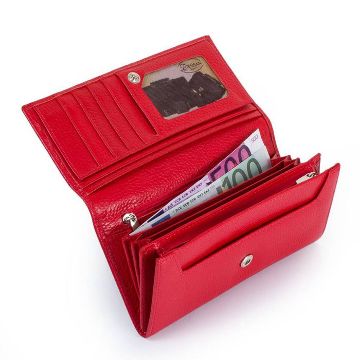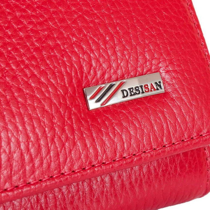 Количество основных отделений (для купюр): 3. Дополнительные отделения: 3(одно из них на молнии). Отделения для визиток, банковских и дисконтных карт: 5. Отделения для фотокарточек, пропусков, проездных билетов и прочих документов: 3 (имеют прозрачные окошки). Карман-монетница закрывается застежкой-молнией. Материал изделия: кожа флотар. Цвет: красный. Цвет фурнитуры: серебро. Размеры (X*Y*Z): 17,8*9,2*1,7 см. Аксессуар закрывается внахлест с помощью механической кнопки. Изделие упаковано в фирменную картонную коробку. Страна происхождения торговой марки Desisan - Турция. Гарантия: 1 месяц.