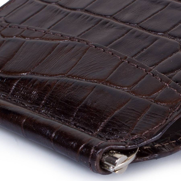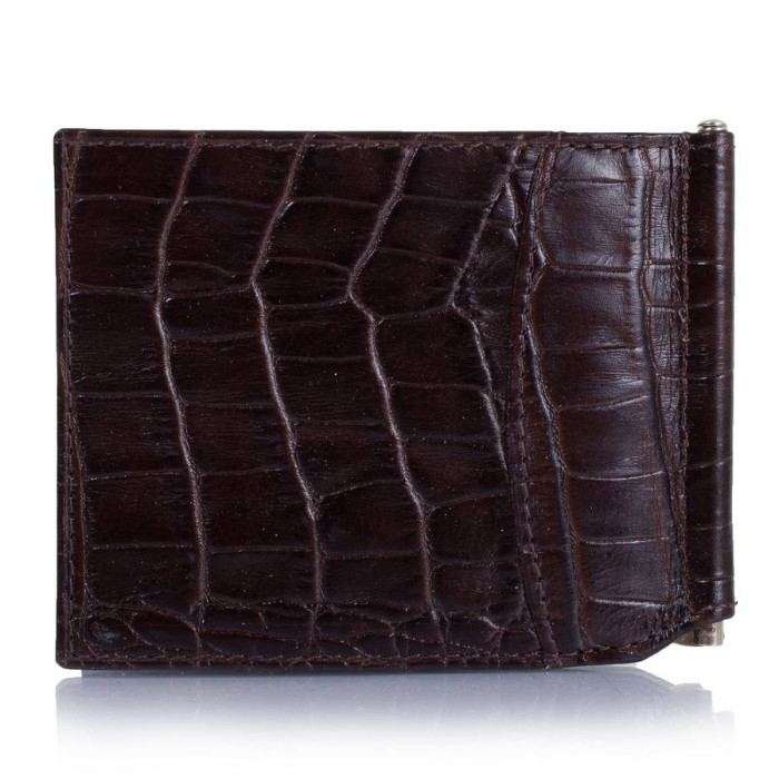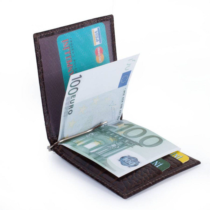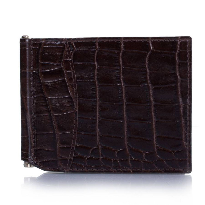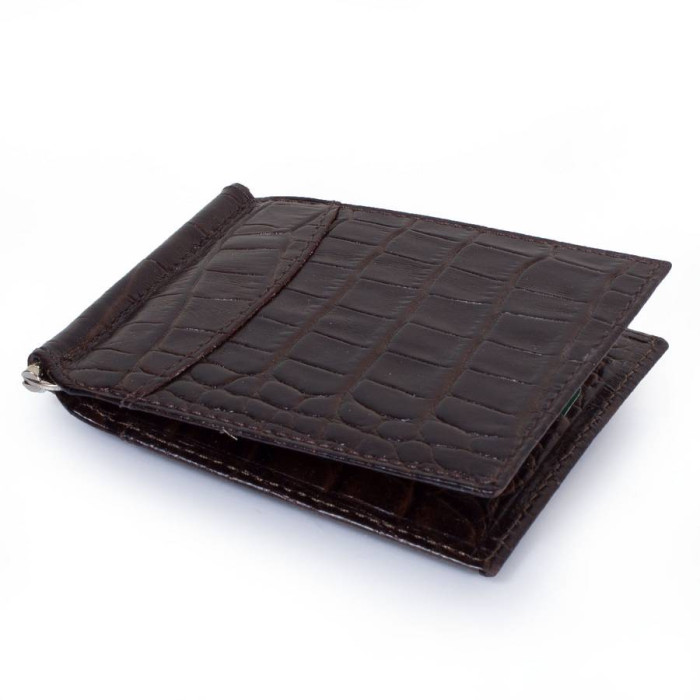 Количество основных отделений (для купюр): 1. Отделения для фотокарточек, пропусков, проездных билетов и прочих документов: 1. Отделения для визиток, банковских и дисконтных карт: 3. Материал изделия: кожа под крокодила. Цвет: коричневый. Цвет фурнитуры: серебро. Размеры (X*Y*Z): 11*8,5*0,5 см. В раскрытом виде ширина изделия составляет 20 см. Аксессуар выполнен без застежки. Изделие упаковано в фирменную коробку из плотного картона. Страна происхождения торговой марки Canpellini - Турция. Гарантия: 1 месяц.