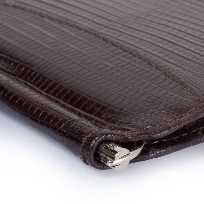 В зажиме для купюр важно, из какого материала изготовлен верх, и насколько надежна фурнитура. Этот специфический и модный аксессуар должен крепко удерживать денежные купюры, поскольку застежка здесь отсутствует, и качество каждой детали играет решающую роль. Поэтому так важно брендовое происхождение данной модели, в которой авторитетное имя турецкой фирмы CANPELLINI уже служит гарантией качества. Актуальное, красивое тиснение украшает натуральную кожу коричневого цвета, отчего изделие становится еще и модным, презентабельным. Дополнительный функционал обеспечивают кармашки для карточек и прозрачное отделение для проездного документа или пропуска. Доступность изделия дает низкая цена, по которой его можно купить в магазине «ЕМИЛИ».
