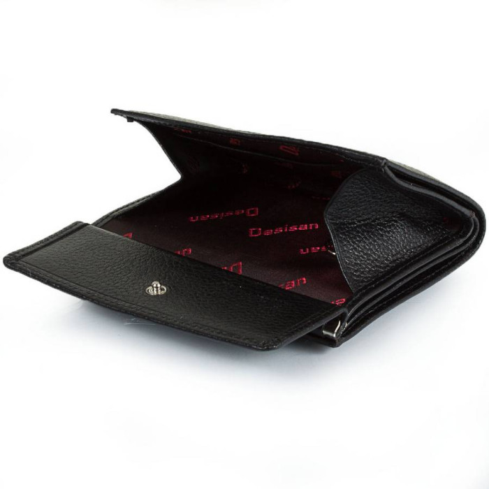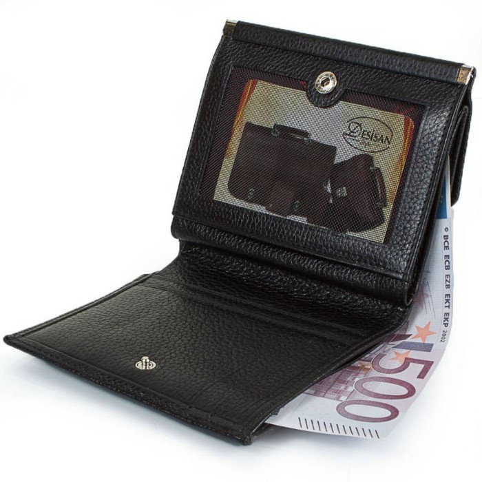 Количество основных отделений (для купюр): 2. Отделения для фотокарточек, пропусков, проездных билетов и прочих документов: 1 (имеет прозрачное окошко). Отделения для визиток, банковских и дисконтных карт: 3. Дополнительные отделения: 2. Отделения для мелочи: 1. Карман-монетница закрывается при помощи клапана и механической кнопки. В нем раположен небольшой накладной кармашек. Материал изделия: кожа под змею. Цвет: черный. Цвет фурнитуры: серебро. Размеры (X*Y*Z): 12*10*1,5 см. Аксессуар закрывается при помощи механической кнопки. Изделие упаковано в фирменную картонную коробку. Страна происхождения ТМ Desisan - Турция. Гарантия: 1 месяц.