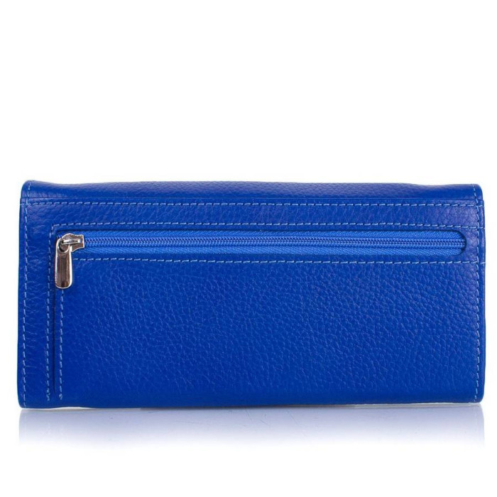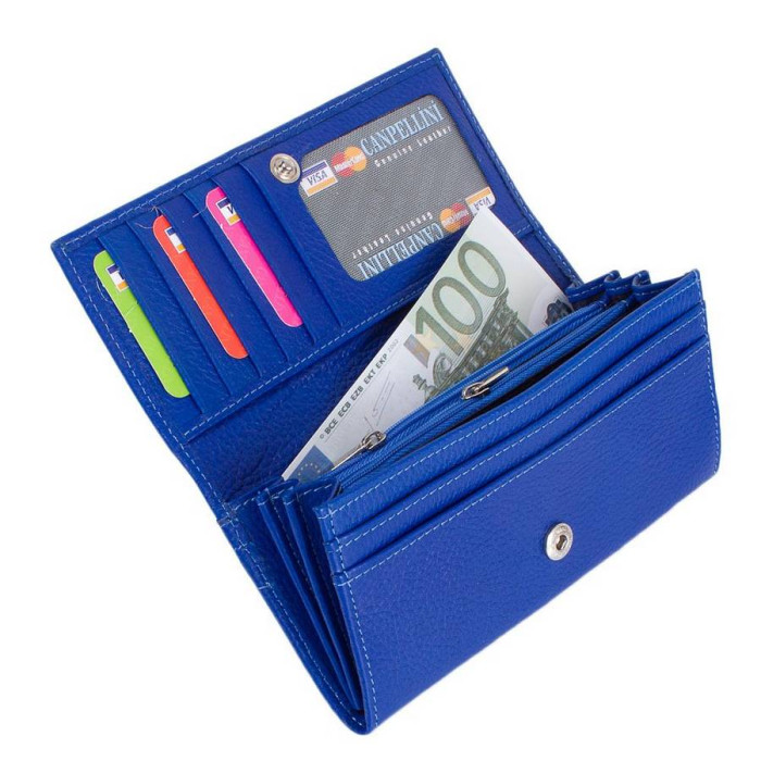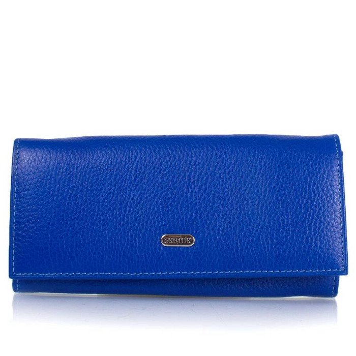 Количество основных отделений (для купюр): 3. Отделения для фотокарточек, пропусков, проездных билетов и прочих документов: 1 (имеет прозрачное окошко). Отделения для визиток, банковских и дисконтных карт: 5. Дополнительные отделения: 3. На тыльной стороне кошелек имеет один большой горизонтальный накладной карман, а также прорезной карман на молнии. Отделения для мелочи: 2. Карман-монетница закрывается с помощью застежки-молнии. Материал изделия: кожа флотар. Цвет: лазурно-синий. Цвет фурнитуры: серебро. Размеры (X*Y*Z): 18,5*9,5*3 см. Аксессуар закрывается при помощи клапана на механической кнопке. Изделие упаковано в фирменную картонную коробку. Страна происхождения ТМ Canpellini - Турция. Гарантия: 1 месяц.