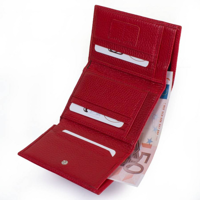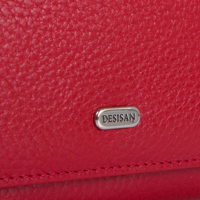 Количество основных отделений (для купюр): 2. Отделения для визиток, банковских и дисконтных карт: 8. Отделения для SIM-карт: 2. Дополнительные отделения: 5. Отделения для мелочи: 1. Карман-монетница закрывается при помощи клапана и механической кнопки. Материал изделия: кожа. Цвет: красный. Цвет фурнитуры: серебро. Размеры (X*Y*Z): 12,6*9*2,5 см. Аксессуар закрывается при помощи механической кнопки. Изделие упаковано в фирменную картонную коробку. Страна происхождения ТМ Desisan - Турция. Гарантия: 1 месяц.
