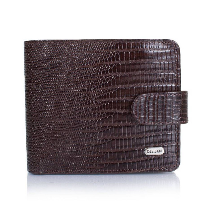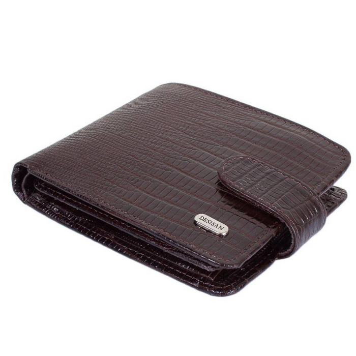 Мужские аксессуары показывают уровень ответственности по отношению к самому себе, а значит, и уважения к окружающим, ведь добротные вещи вызывают доверие и располагают к общению. Кожаное портмоне торговой марки DESISAN отлично справится с обязанностями повседневной вещи, с которой приятно иметь дело и не стыдно достать на людях. Насыщенный цвет гладкой кожи с приятным чешуйчатым тиснением отлично впишется в антураж делового костюма, добавляя изысканной простоты. Внутри выполненного в два сложения кошелька Вы найдете кармашек для мелочи, прорезные отделения для карт и визиток, а под откидным клапаном находится прозрачное отделение для пропуска или удостоверения. Купить брендовое портмоне по выгодной цене Вы можете в интернет-магазине «ЕМИЛИ».