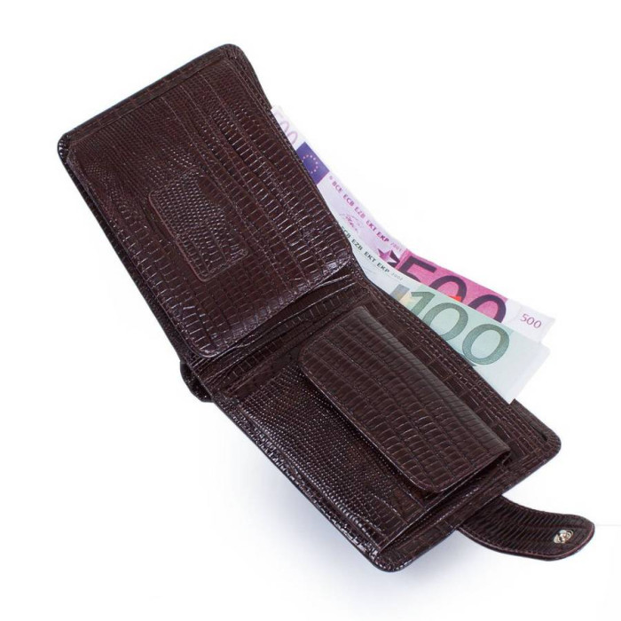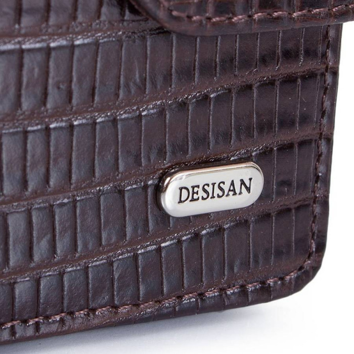 Количество основных отделений (для купюр): 2. Крайнее из них на застежке-молнии. Отделения для SIM-карт: 2. Отделения для визиток, банковских и дисконтных карт: 6. Отделения для фотокарточек, пропусков, проездных билетов и прочих документов: 1 (имеет прозрачное окошко). Материал изделия: кожа с декоративным тиснением (под змеиную кожу). Цвет: темно-коричневый. Цвет фурнитуры: серебро. Размеры (X*Y*Z): 9,5*12,5*1,5 см. Ширина в раскрытом виде - 23,5 см. Аксессуар закрывается с помощью клапана и механической кнопки. Изделие упаковано в фирменную картонную коробку. Страна происхождения ТМ Desisan - Турция. Гарантия: 1 месяц. Внимание! В зависимости от настроек монитора оттенок изделия может отличаться от действительности. Пожалуйста, сделайте проверку цвета на нескольких компьютерах или уточните эту информацию у наших менеджеров.