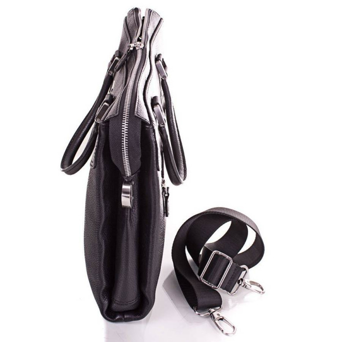 Количество основных отделений: 2. Сумка имеет большой прорезной карман на молнии, накладной карман, предназначенный для хранения мобильного телефона, органайзер для карандашей, ручек и стилусов, полноразмерный карман-перегородку на молнии, а также отделение для мини-ноутбука, нетбука или планшета. На тыльной стороне модели есть 1 прорезной карман на молнии. Сумка имеет 2 ручки для переноса в руке. Их длина не регулируется и составляет 38 см, а высота от крайней точки ручки до сумки - 11 см. В комплект к изделию прилагается съемный плечевой ремень. Его длина может регулироваться при помощи металлической пряжки от 84 до 150 см. Аксессуар пригоден для ношения в руке, на плече и через плечо. Материал подклады: плотная ткань. Материал изделия: кожа флотар. Цвет: черный. Цвет фурнитуры: серебро. Размеры (X*Y*Z): 36*29*6 см. Ширина дна может немного изменяться. Сумка закрывается при помощи молнии. Документы формата А4 помещаются в аксессуар. Изделие упаковано в полиэтиленовый пакет, а также тканевый чехол с логотипом ТМ KARLET. Страна происхождения ТМ KARLET - Турция. Гарантия: 3 месяца.