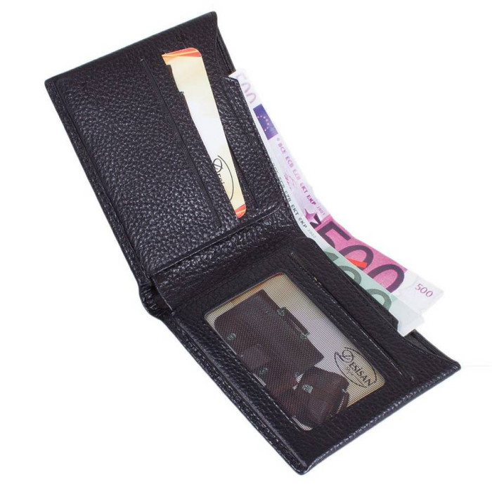 Количество основных отделений (для купюр): 2. Крайнее из них на застежке молнии. Отделения для визиток, банковских и дисконтных карт: 7. Отделения для фотокарточек, пропусков, проездных билетов и прочих документов: 1 (имеет прозрачное окошко). Материал изделия: кожа флотар. Цвет: черный. Цвет фурнитуры: серебро. Размеры (X*Y*Z): 9,5*12,5*1,5 см. Ширина в раскрытом виде - 23,5 см. Аксессуар выполнен без застежки. Изделие упаковано в фирменную картонную коробку. Страна происхождения ТМ Desisan - Турция. Гарантия: 1 месяц.